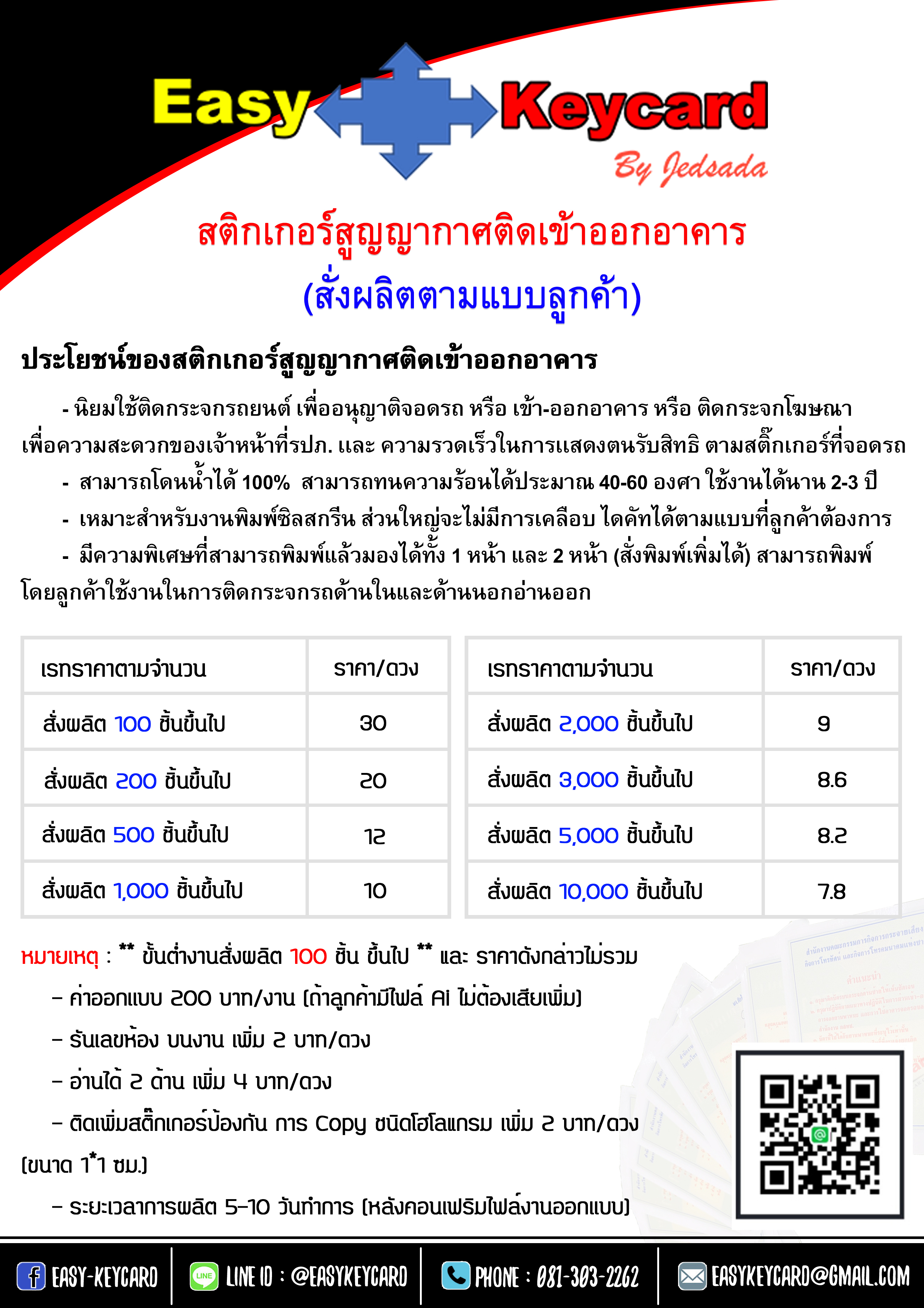 5.สั่งผ่าน อีเมลล์ : easykeycard@gmail.com (ขอใบเสนอราคาได้ครับ)